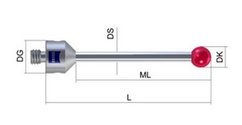 Taster mit Gewinde, M5, Hartmetallschaft, Rubinkugel, DG11, DK1, DS0.8, L20, ML10, Gewicht = 5.8 g